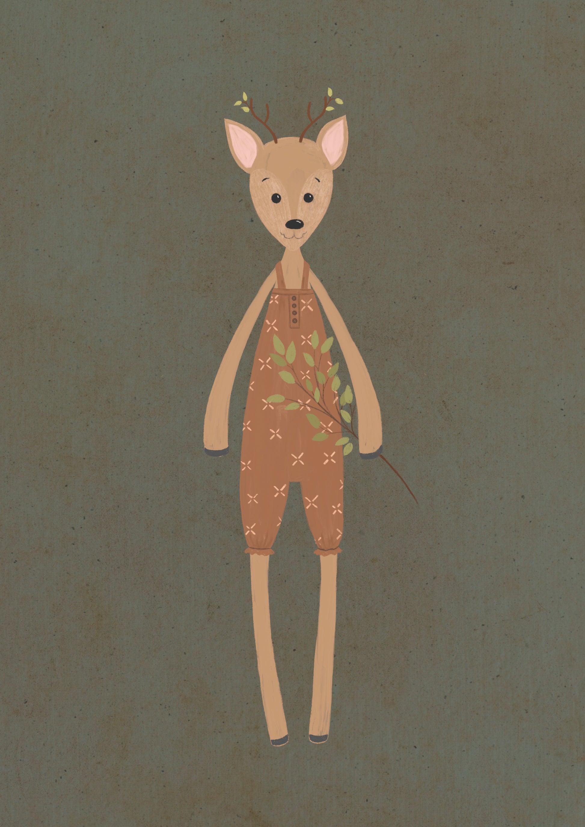 The deer enjoys walking in the woods, gathering flowers, herbs, and wild berries. Decorate children's space with a fine taste and charm.