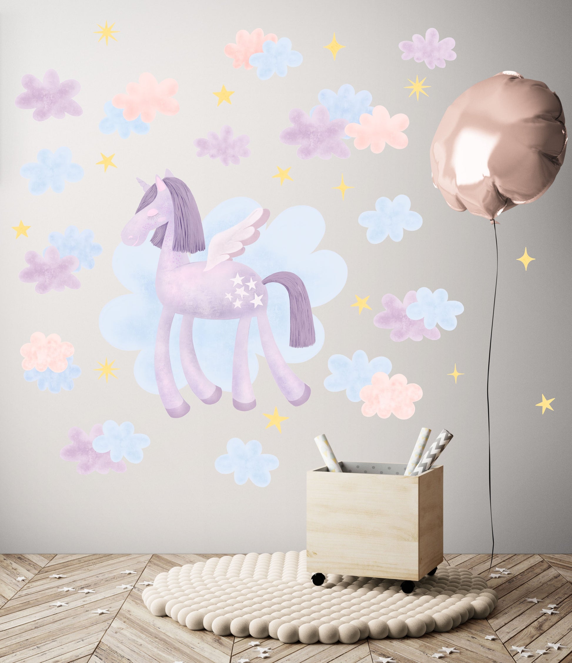 Purple Unicorn In The Clouds - Fabric Wall Decals