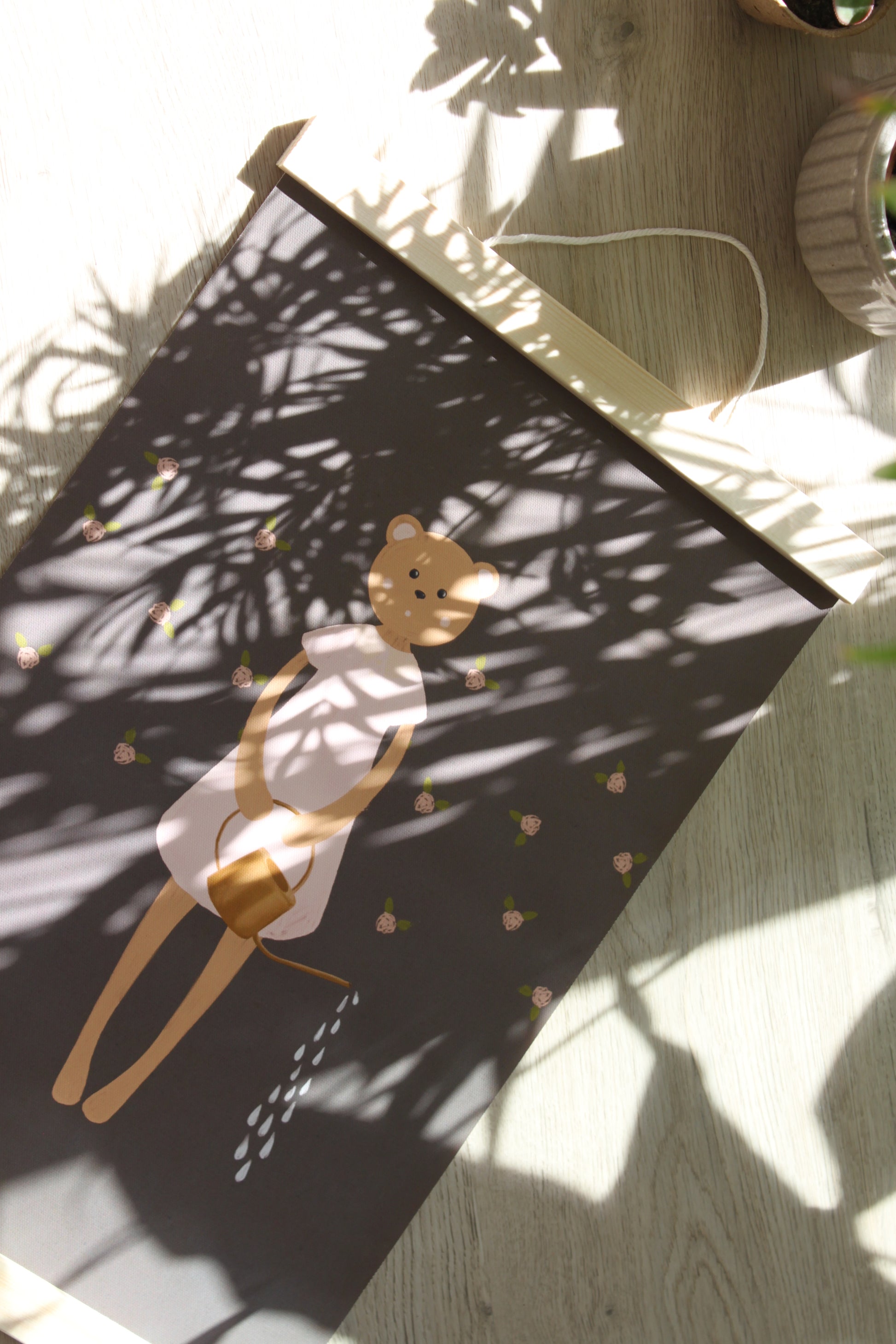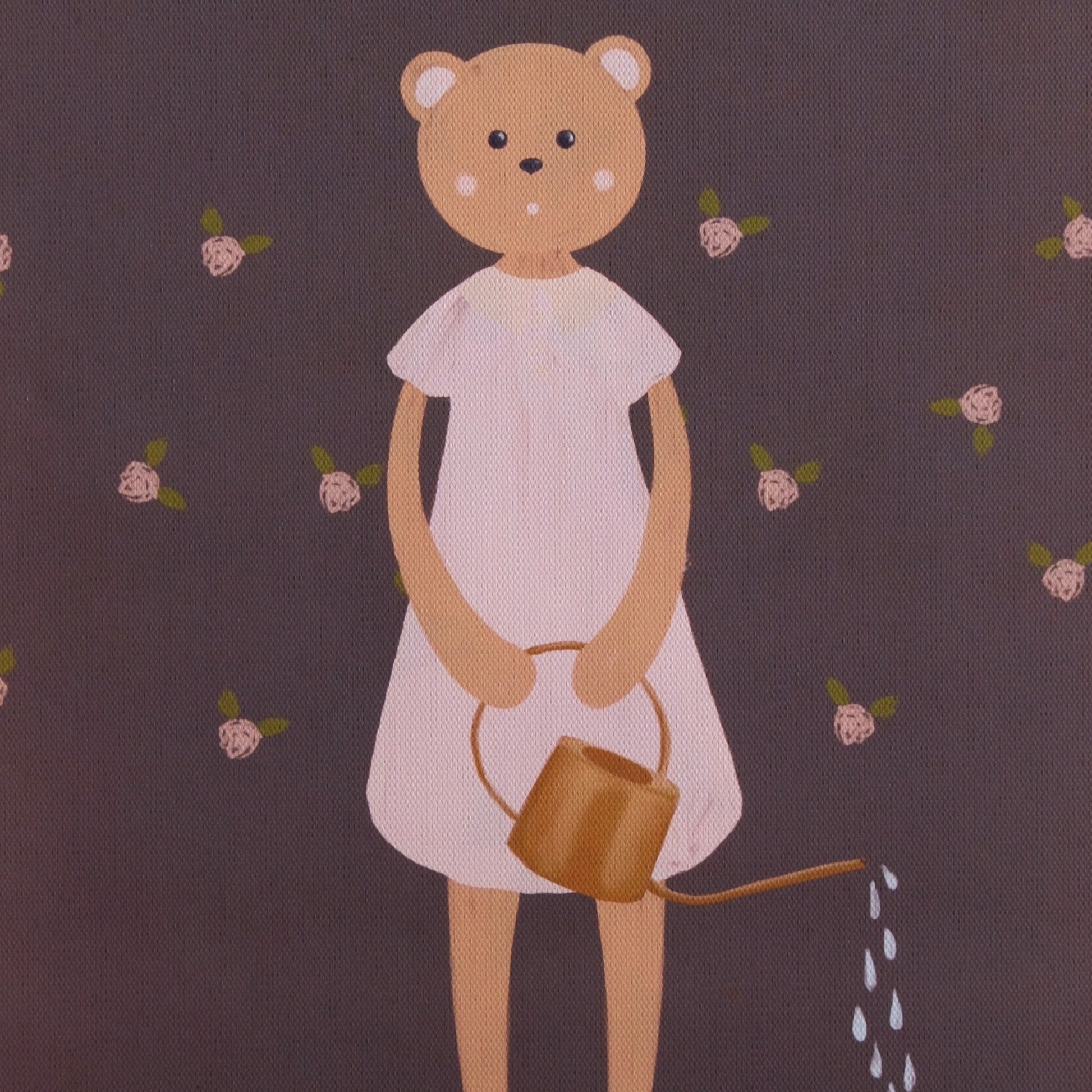 Bear Watering Rose Garden – Canvas Art for Young Carers