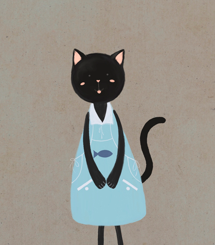 Cute Black Kitty – Canvas Art with Apron Charm